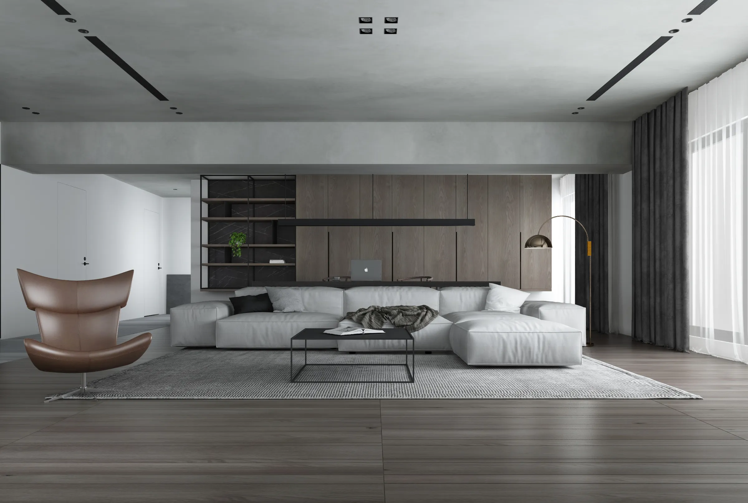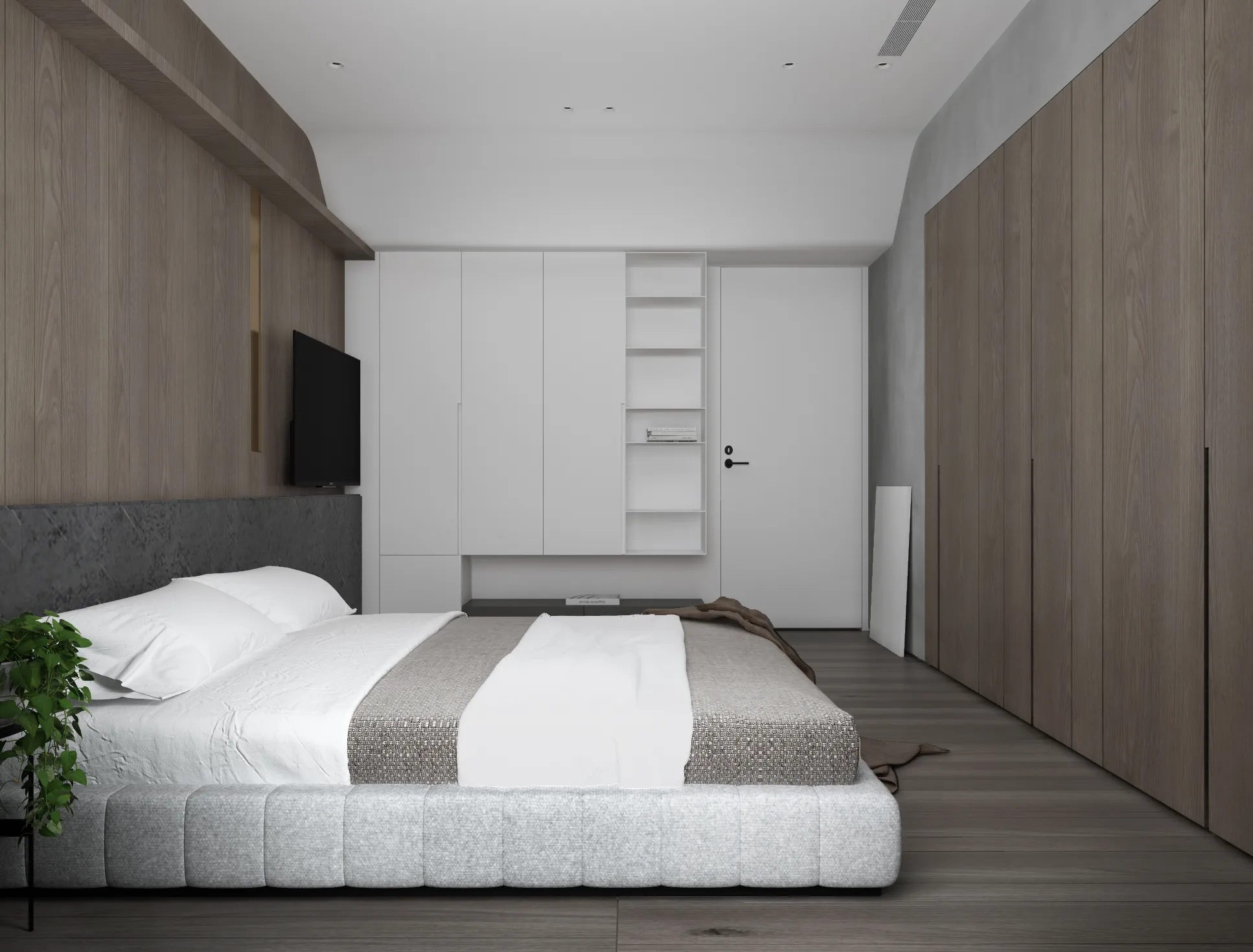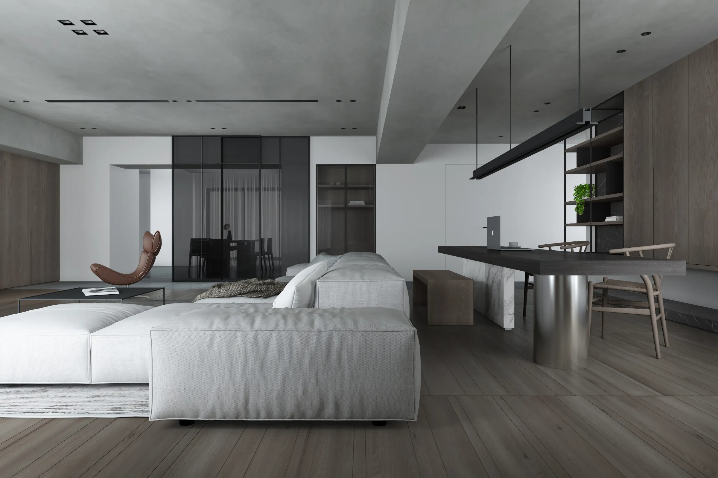 深而不重的木,圍塑了紳士且穩重的氛圍;靜而不濁的灰,疊敘了生活的動線及細節;純而不雜的白,成為光線延展最好的介質。