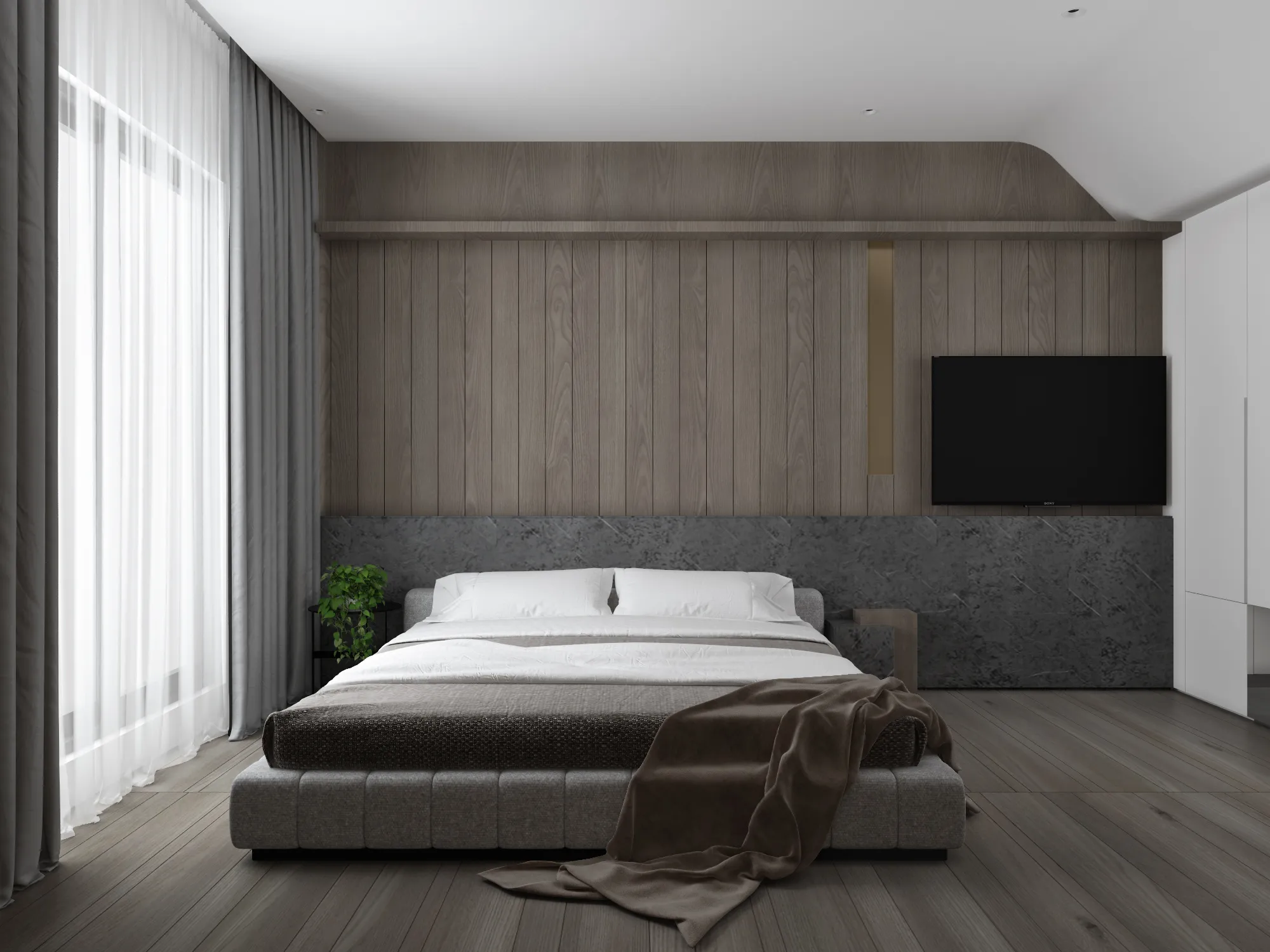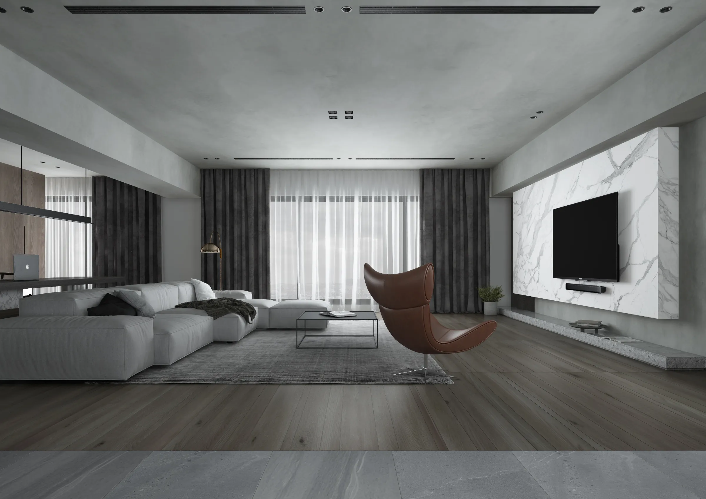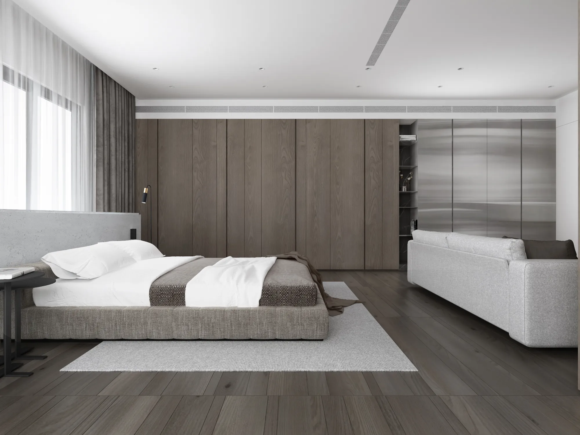 深而不重的木,圍塑了紳士且穩重的氛圍;靜而不濁的灰,疊敘了生活的動線及細節;純而不雜的白,成為光線延展最好的介質。