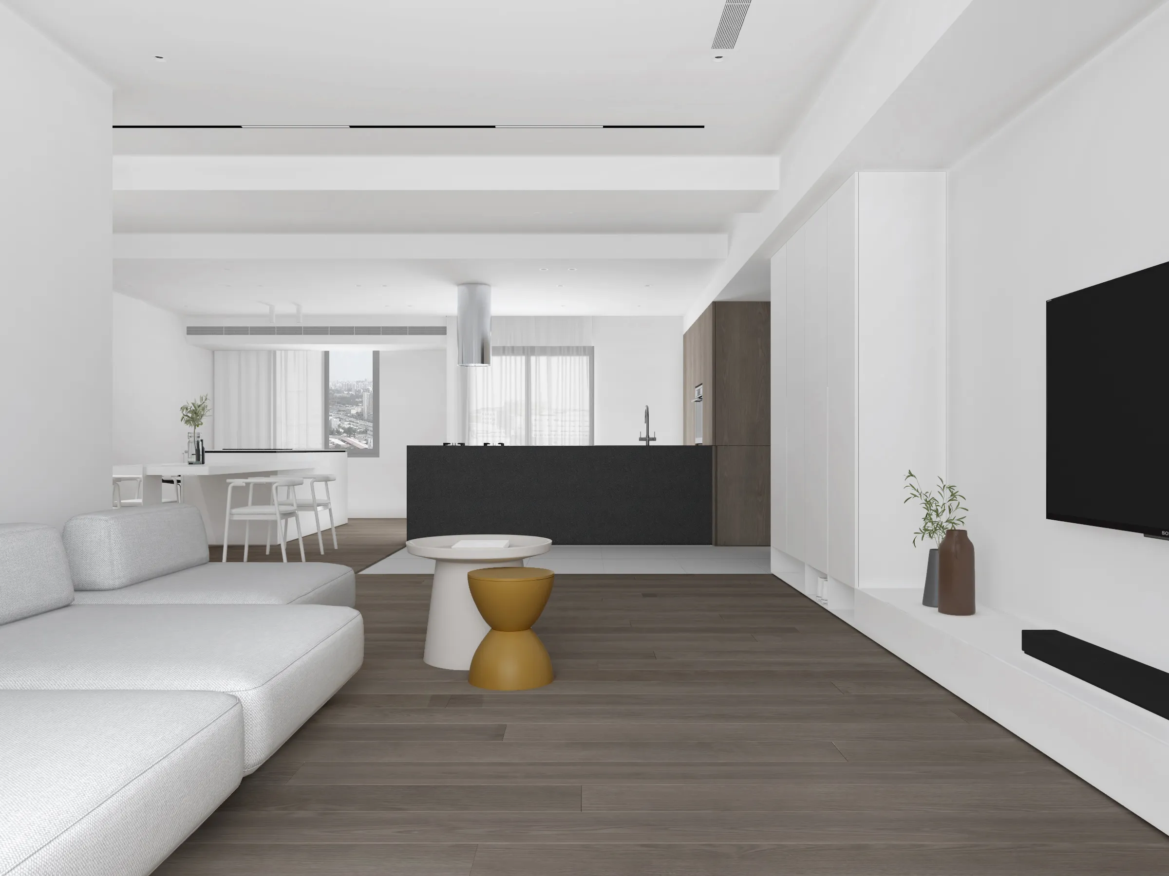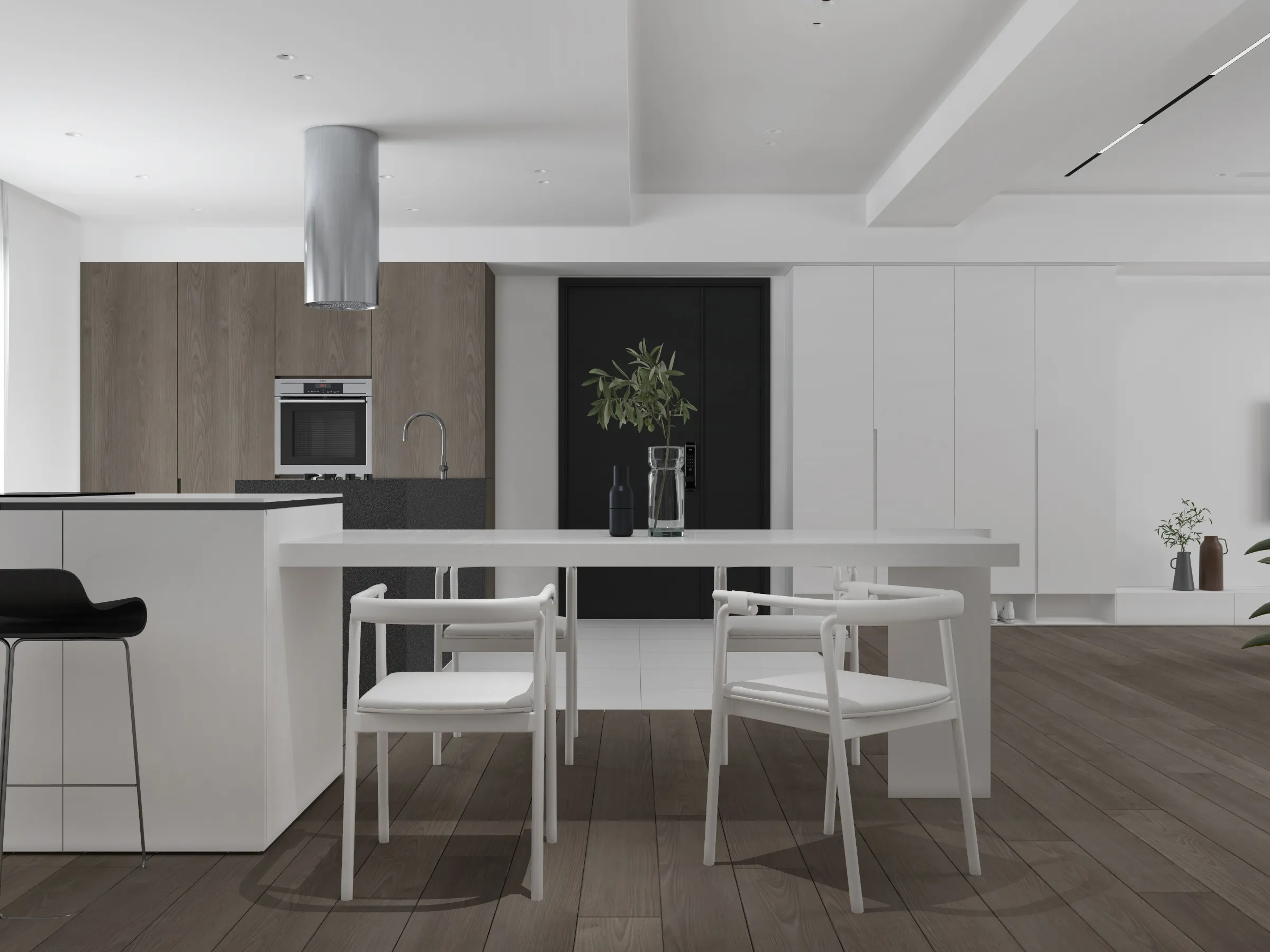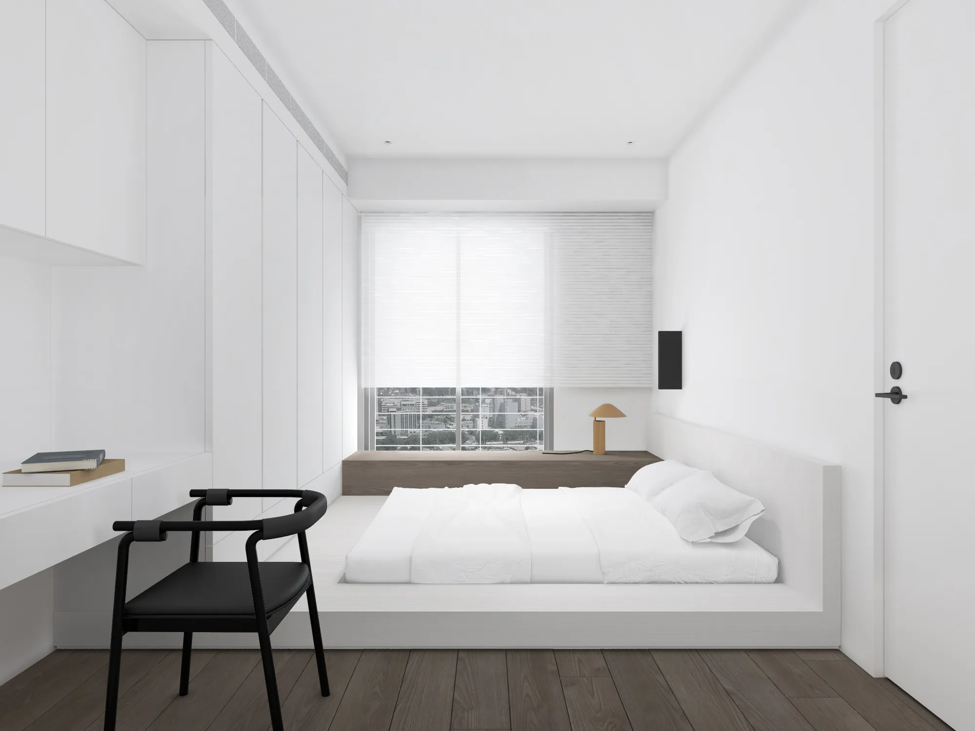 極簡,不拖泥帶水,不帶後綴及副標題,心有餘裕,生活優雅。以簡單的白、自然的木質紋理、質感的淺灰,揮去空間中的凌亂與繁雜。在理性與感性中,創造和諧的設計美學。