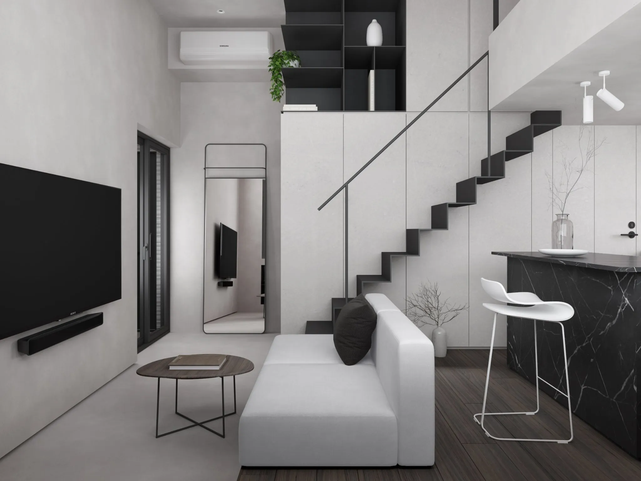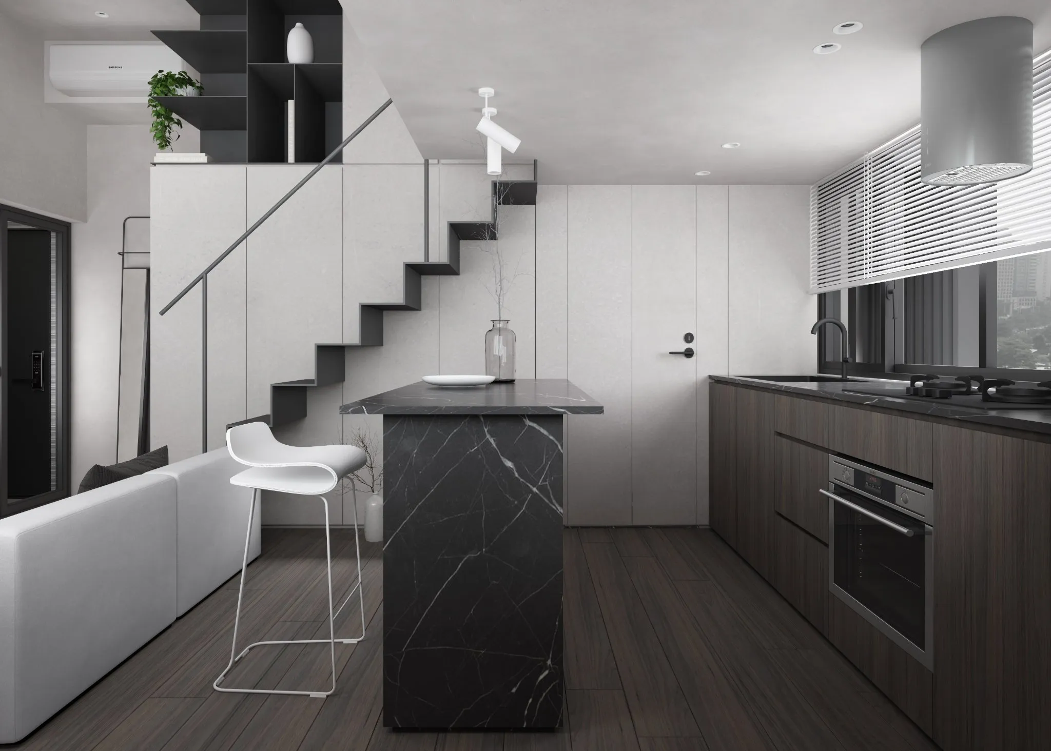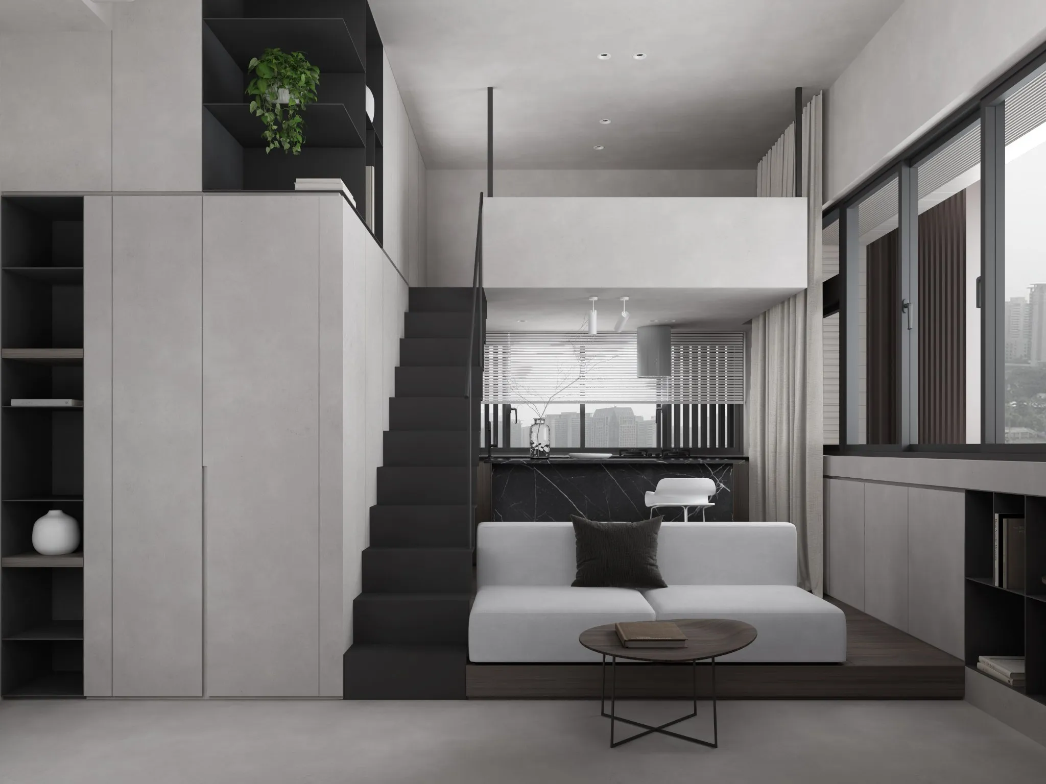灰調圍塑靜謐場域,打造舒心的居家氛圍,一切歸於自然質樸樣貌,去繁從簡,運用夾層拓展領域,讓生活兼具機能與美感,小坪數也能擁有足夠的空間,圓滿了日常時光。