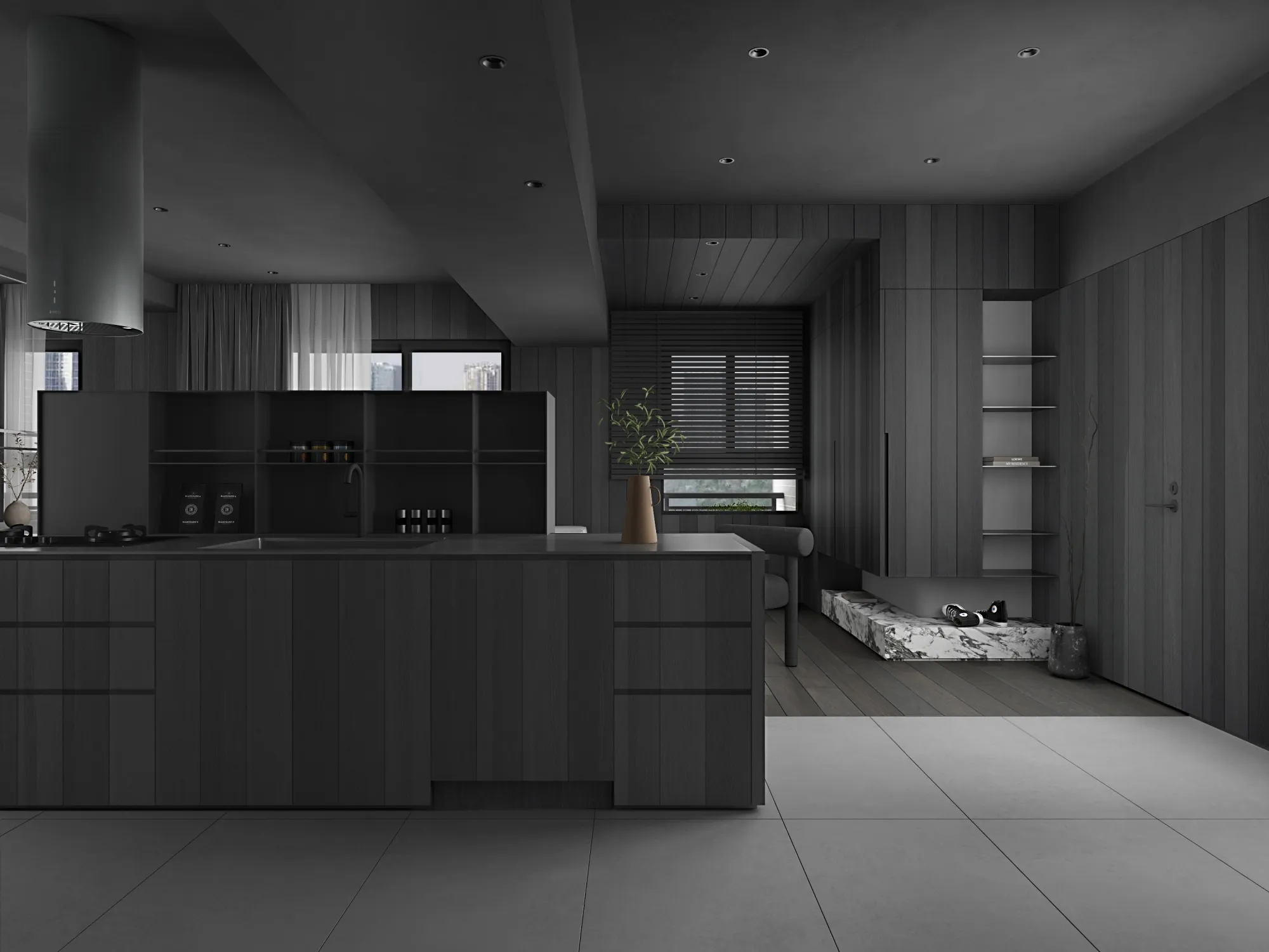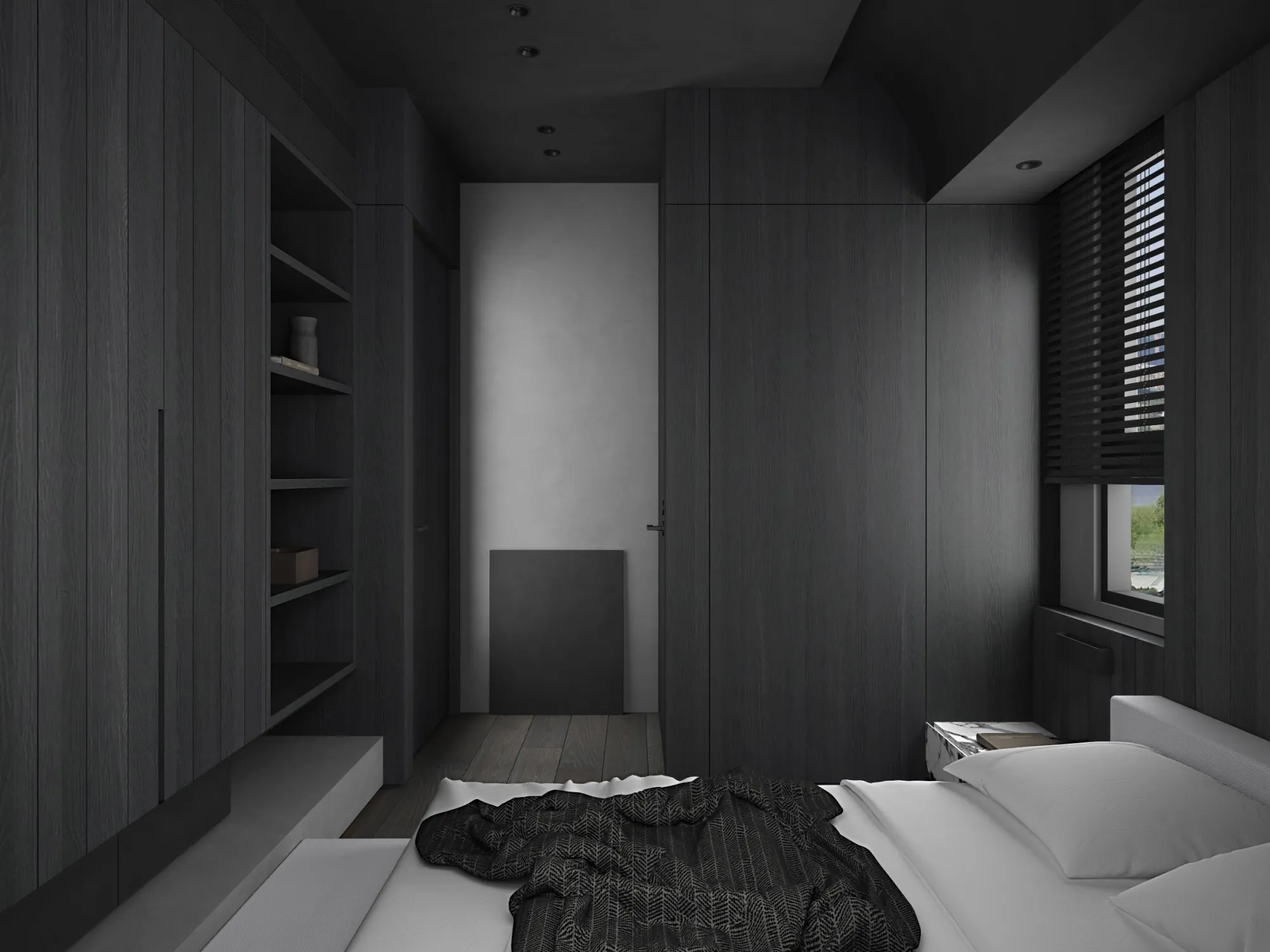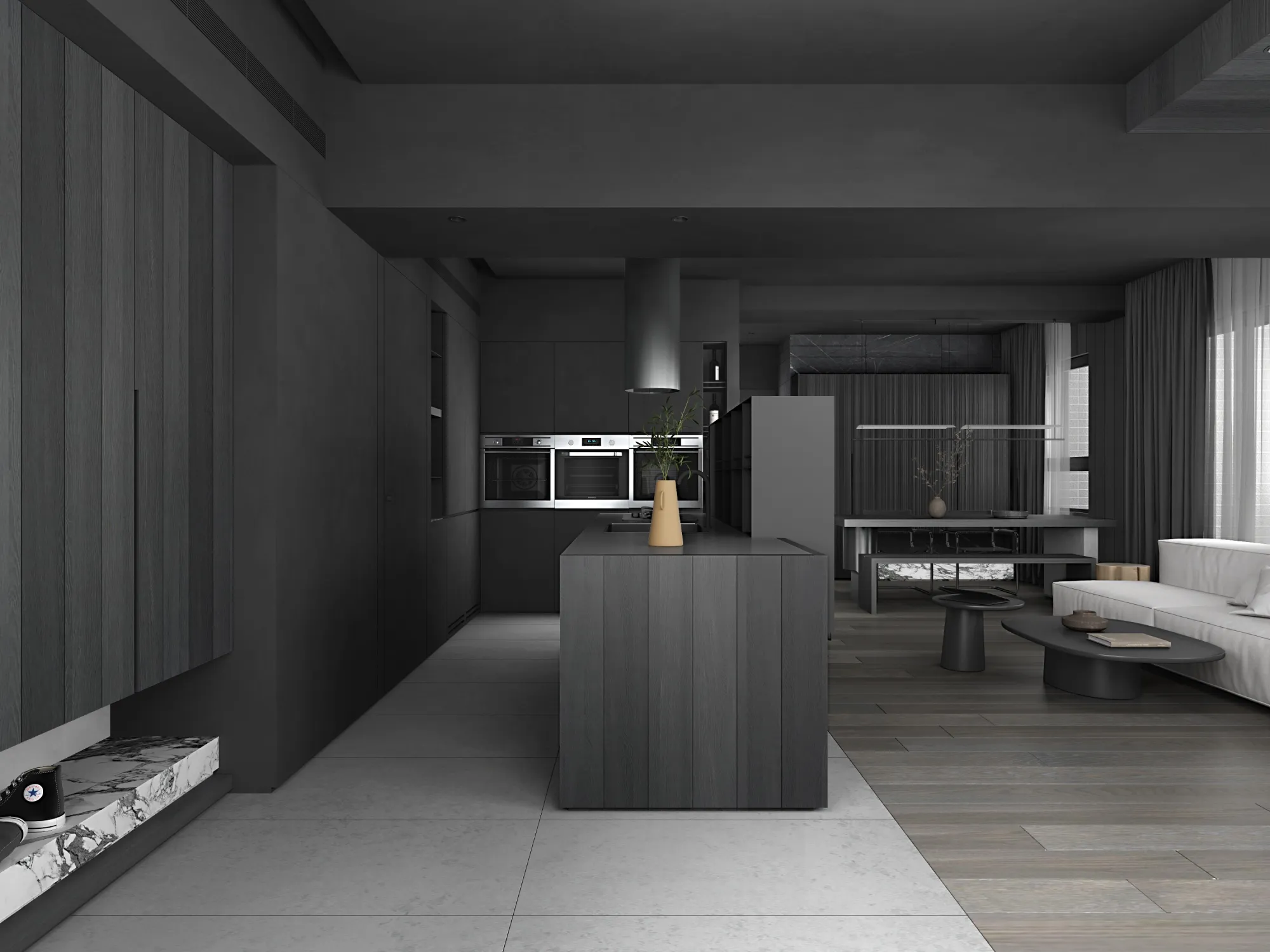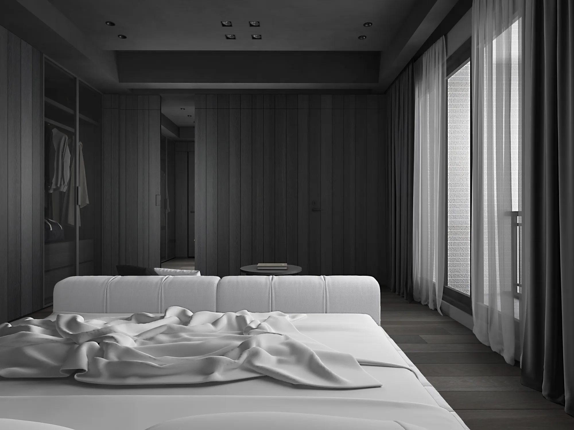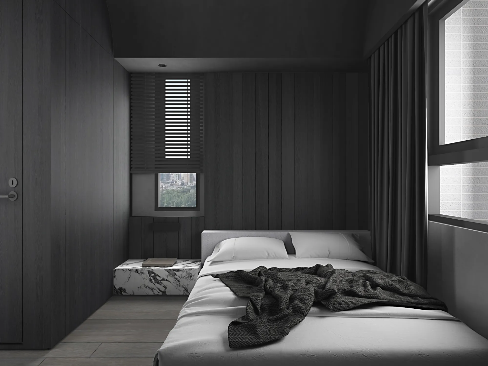 運用多元材質與無彩度構成多重層次設計,在自然過渡的動線中詮釋空間的多樣性,在看似沒有溫度的外表下,隱藏著細膩與溫暖。當不同元素與周圍的黑色互碰撞時,它們既獨立又被黑色溶解,看似被吞噬其中,卻又在一片寂靜中自成一角。黑色是光誕生的顏色,好似生活的底色,幻化成思想的形狀,無限蔓延交織成了一張柔軟靜謐的網,接住每一個疲憊的靈魂,無盡的自由打破了束縛。與悠然邂逅,以無拘無束的形式給予浪漫另一種可能。