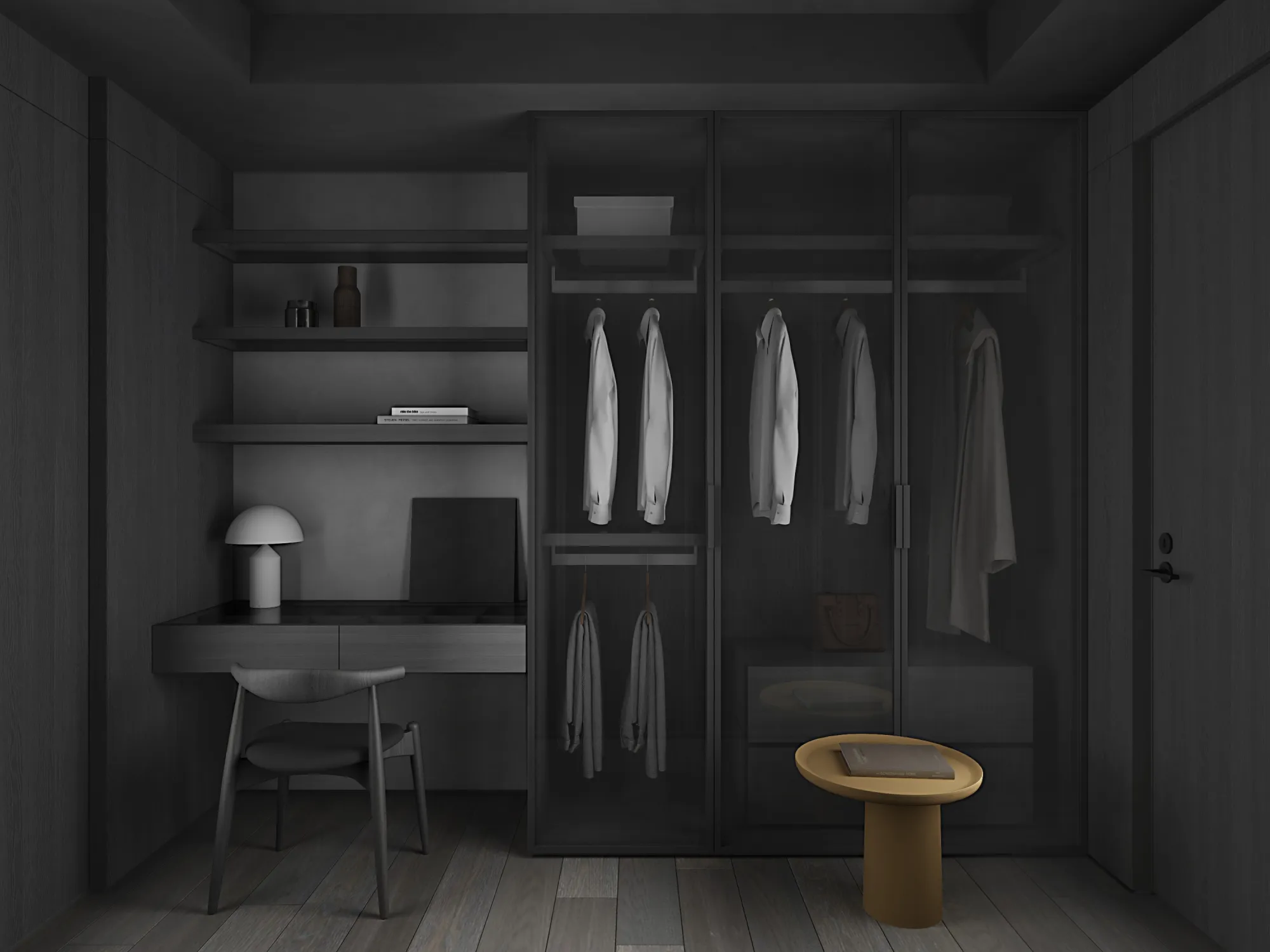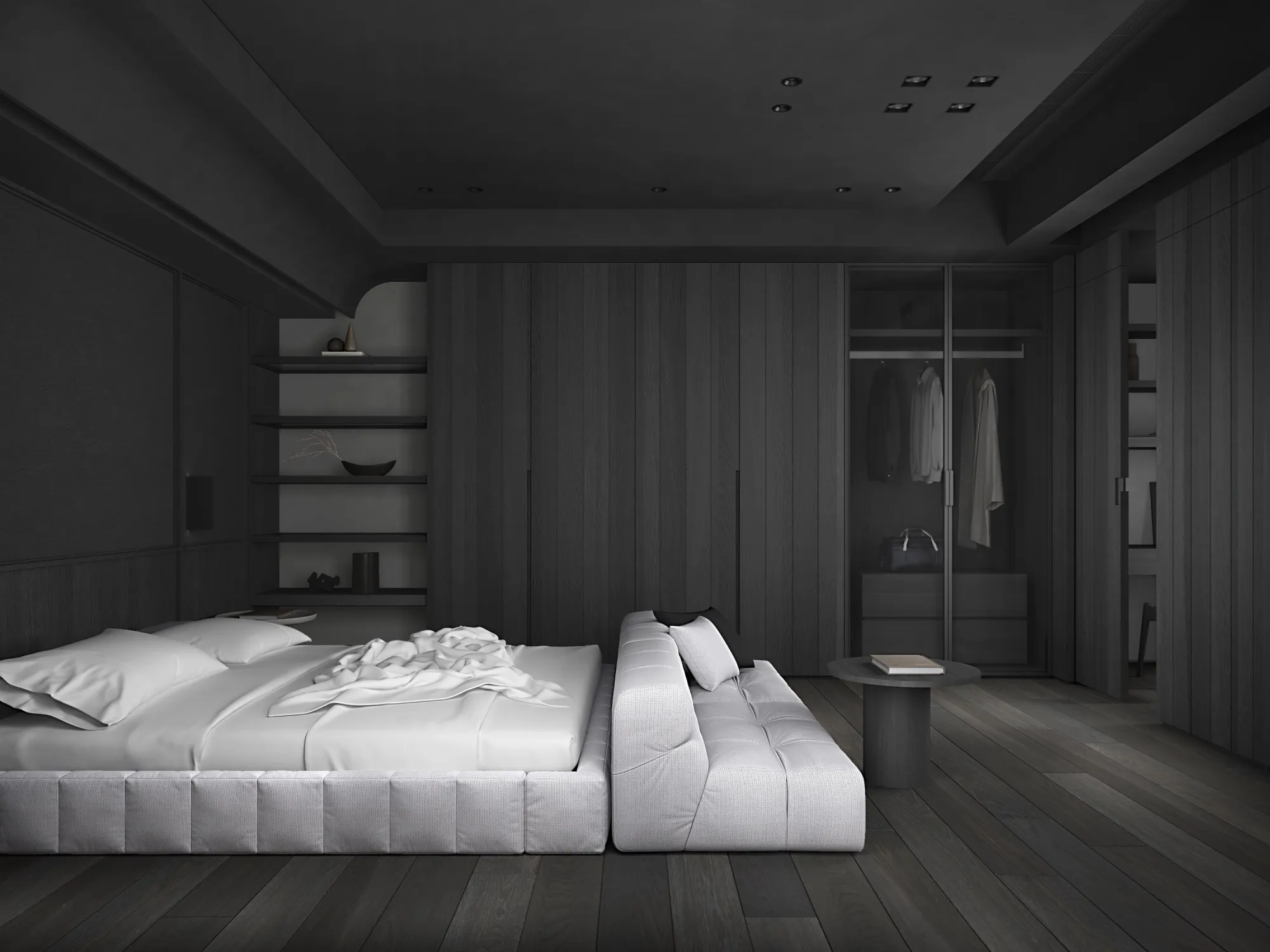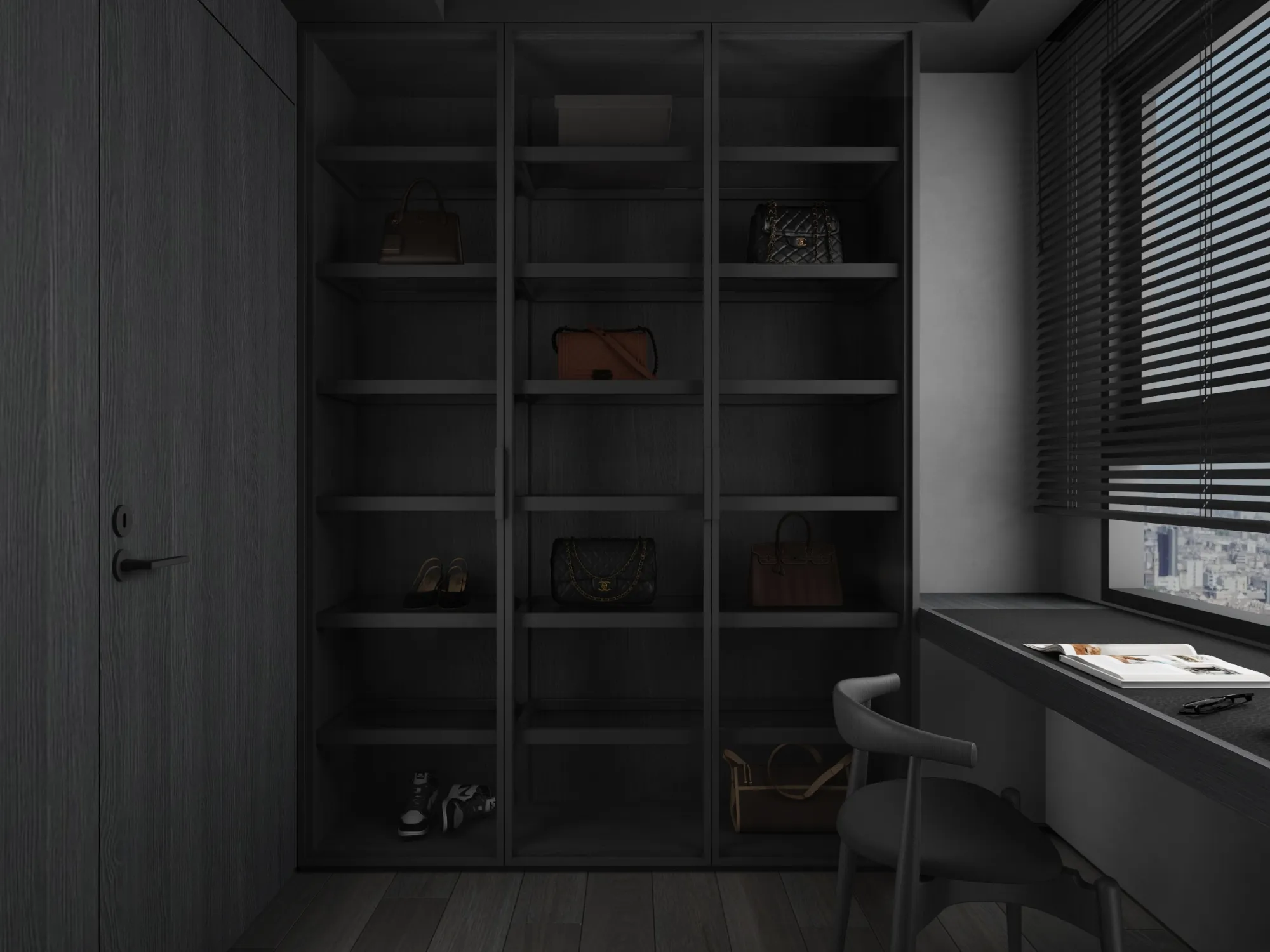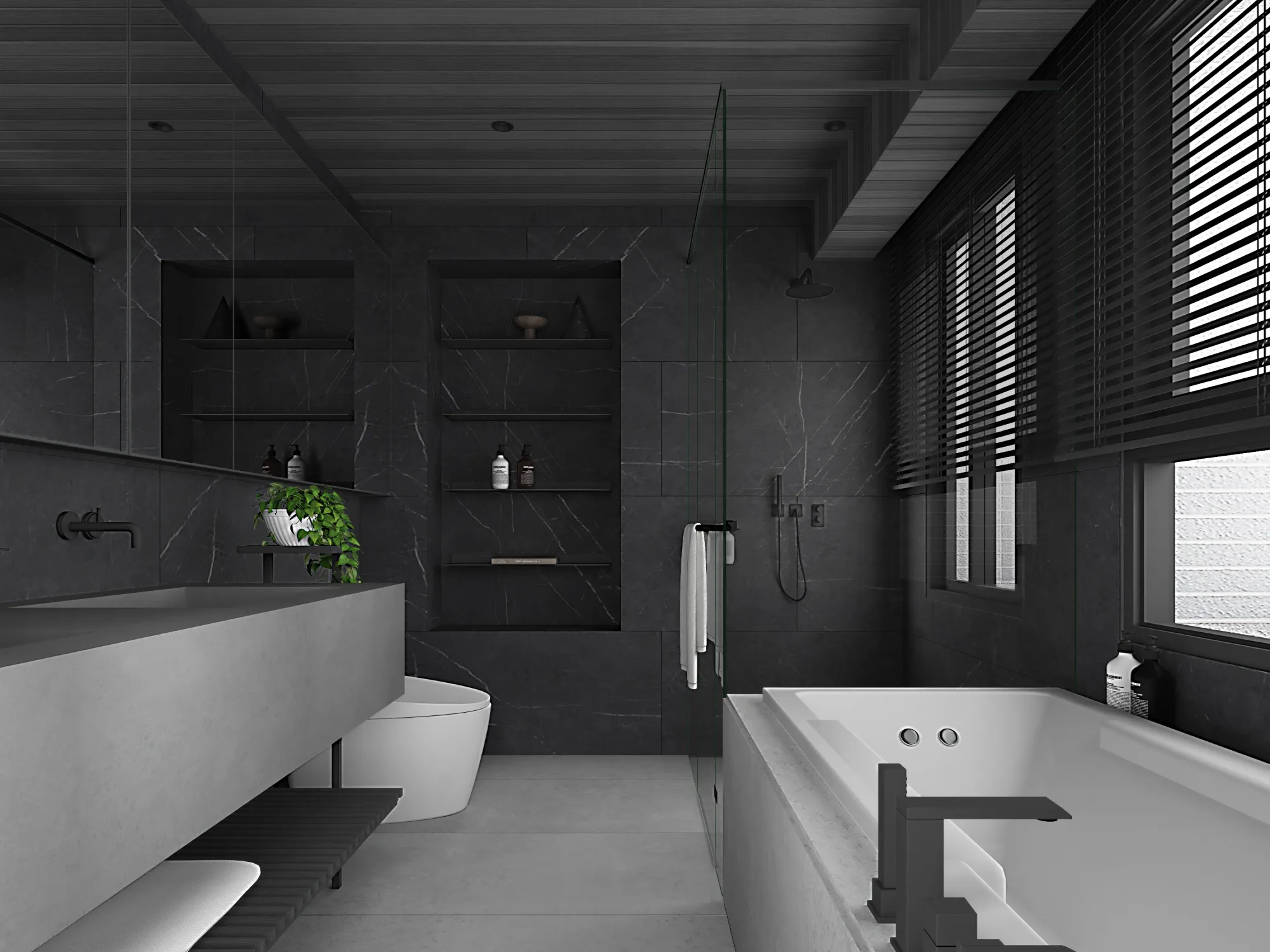 運用多元材質與無彩度構成多重層次設計,在自然過渡的動線中詮釋空間的多樣性,在看似沒有溫度的外表下,隱藏著細膩與溫暖。當不同元素與周圍的黑色互碰撞時,它們既獨立又被黑色溶解,看似被吞噬其中,卻又在一片寂靜中自成一角。黑色是光誕生的顏色,好似生活的底色,幻化成思想的形狀,無限蔓延交織成了一張柔軟靜謐的網,接住每一個疲憊的靈魂,無盡的自由打破了束縛。與悠然邂逅,以無拘無束的形式給予浪漫另一種可能。